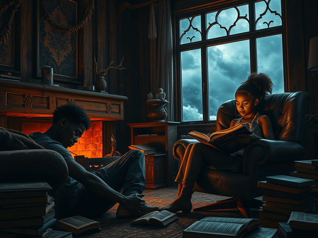 He lies back down, looking at the ceiling, before laughing under his breath, “reading Mom’s grimoire, I wish. You know how powerful she was? You know what we don’t talk about her cause she….” The banging of a tree limb crashing onto the roof causes him to stop. Mid-sentence, followed by the scraping of the tree branches lightly touching the houses, and the wind continued to howl. Jack gave it a moment as it was here, moving at a rapid pace, the splash of the watcher as it hit the ground, and more so their dirt-covered driveway deep in the woods. The heavy rain slamming over the house, Jack gets up to throw more logs on the fire, “So you gonna vent to me about her or just keep it bottle up? Why do you hate her so much?” she asks the roaring of the flames growing flash against her thick wool afro and her western coneflower and sand brown skin, he signs in disbelief “Find I cave. He says” sitting back down his back down against the arm of the sofa “Hate is the wrong word, I am extremely…I don’t know what you call it but I just know I feel an emptiness. Like did I do something?” he stopped for a moment, he had said these words in his head a million times but this is the first time he had been open about it.